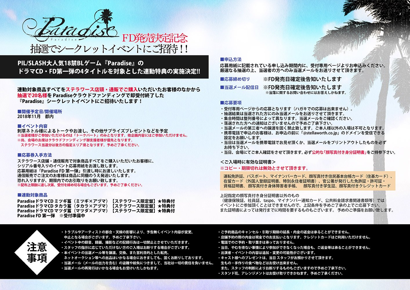 数々の名作18禁BLゲームを手掛ける『PIL/SLASH』より2017年11月に発売された『Paradise』。