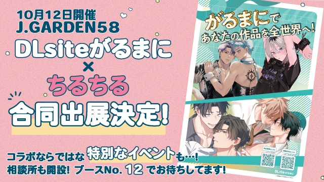 10月12日(日)開催のJ.GARDEN58にて、DLsiteがるまにとちるちるの合同ブース出展が決定いたしました~~~!!!