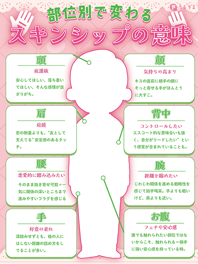 いかがでしたでしょうか。今回は部位別スキンシップの意味をご紹介してきました!